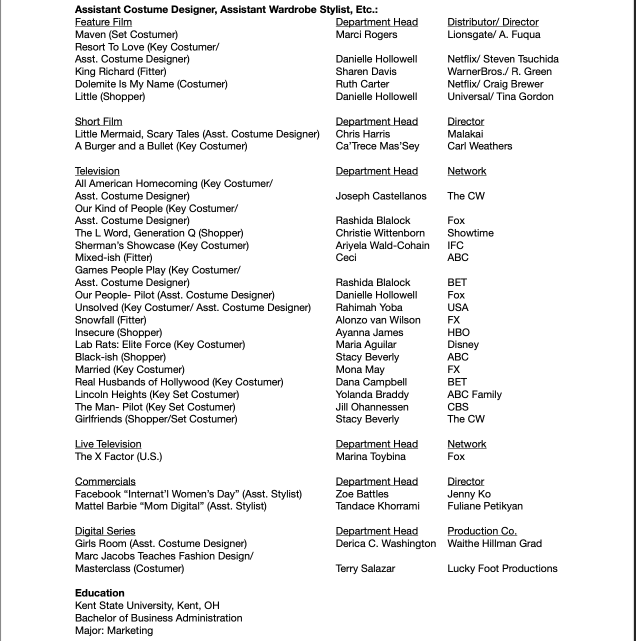 Melia K. Ford, Costume Designer/ Wardrobe Stylist for Tv & Film